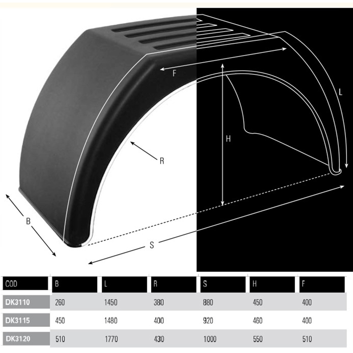 Пластиковое крыло итальянского производителя DOMAR (аналог DK3115) с узнаваемой белой полоской для грузовых автомобилей изготовлено из высококачественного полипропилена под давлением. Подходит для двухскатных колёс в случае, когда 2 колеса на одной полуоси радиусом 16'. Применяется на таких автомобилях, как Газель. Крепления крыла в стоимость не входят и продаются отдельно.