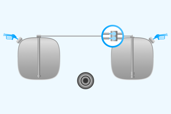 Установка данного бака предусматривает замену оригинальных кронштейнов на крепления производства БАКОР (на родные кронштейны установить невозможно из увеличенных габаритов бака). Вся имеющаяся на баке фурнитура переносится со старого бака на новый (топливозаборник, датчик уровня топлива, сапун). Снизу бака предусмотрено сливное отверстие с болтом на медной шайбе. Бак оборудован резьбовой заливной горловиной.