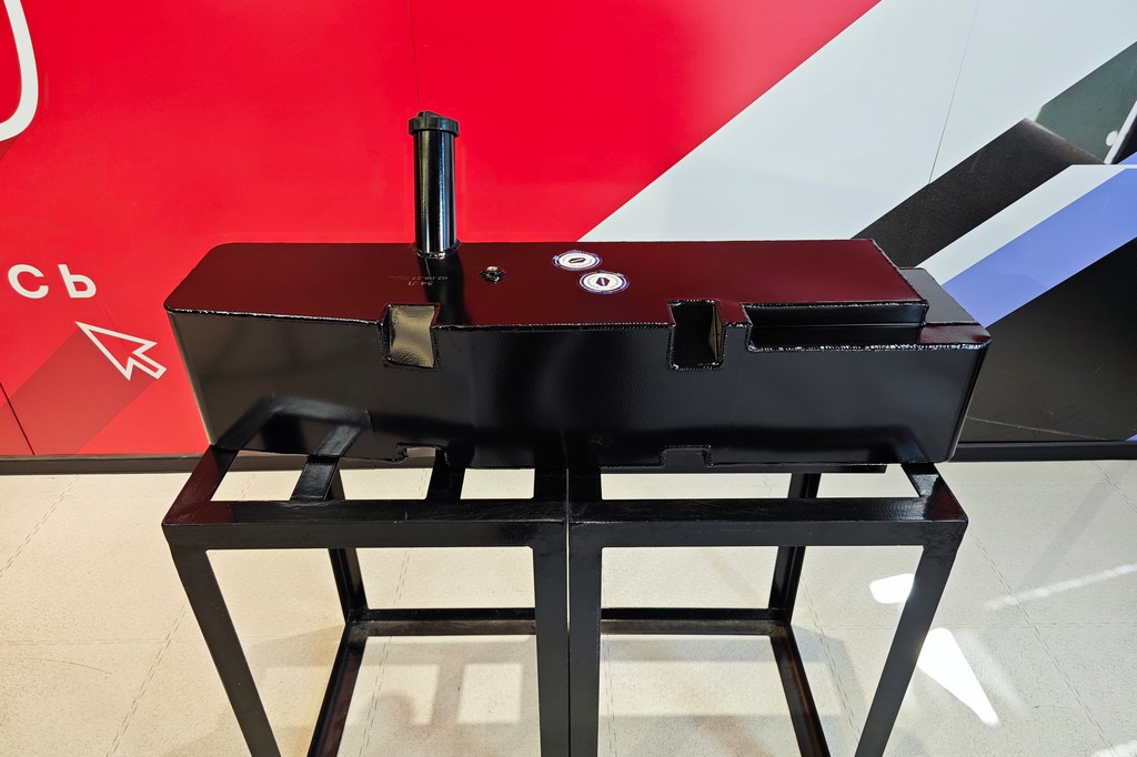 Все технологические отверстия на баке полностью соответствуют оригиналу - с родного бака можно будет перенести топливозаборник и датчик уровня топлива, воздушный клапан так же переносится с родного оригинального бака. В баке Хантер установлены 2 усиленные перегородки, которые обеспечивают более плавное перетекание топлива, а так же предотвращают гидроудары топлива об стенки топливного бака. Для ревизии топливной системы, в баке установлена сливная пробка М18х1,5.